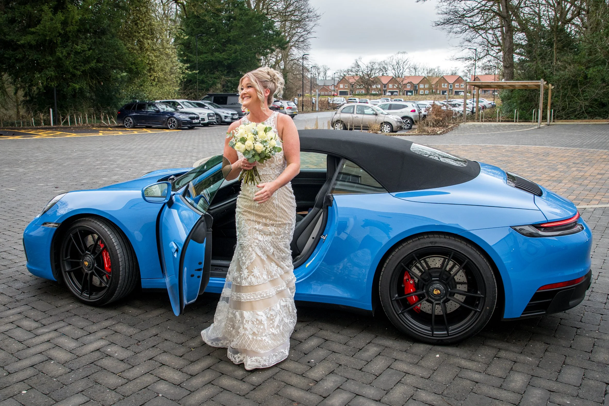 A beautiful blue Porsche rolled into view, instantly drawing smiles from passers-by. There’s something undeniably special about a wedding car, but this one had personality and elegance in equal measure. As Lianne stepped out, all eyes were on her. She looked absolutely fabulous. Her dress was intricately detailed, perfectly fitted, and carried that rare balance of timeless sophistication and modern grace. It suited her completely. There’s a moment at every wedding when everything suddenly feels real, and this was it.